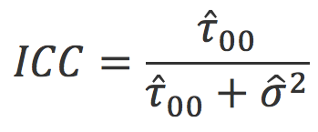 This can be interpreted as follows: About 58% of the total variance popularity scores is accounted for by differences in schools. In other words, school makes a difference. The higher the ICC score is, the greater the dependance on groupings in the outcome values and hence the greater the suggested need for a random component to the model.